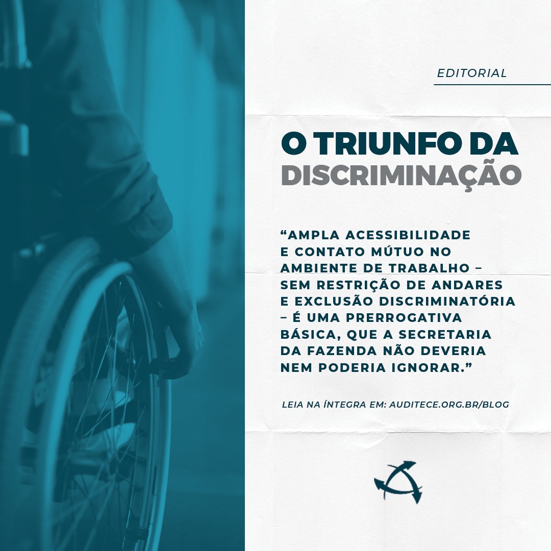 Quando a SEFAZ-CE cerceia a possibilidade de determinados servidores socializarem, de interagirem e até mesmo de transitar no local de trabalho, pelo simples fato de serem pessoas com deficiência ou mobilidade reduzida, o órgão centenário, reconhecido nacionalmente por sua excelência funcional, acaba por dá um grande mau exemplo a toda a sociedade, de DISCRIMINAÇÃO.
