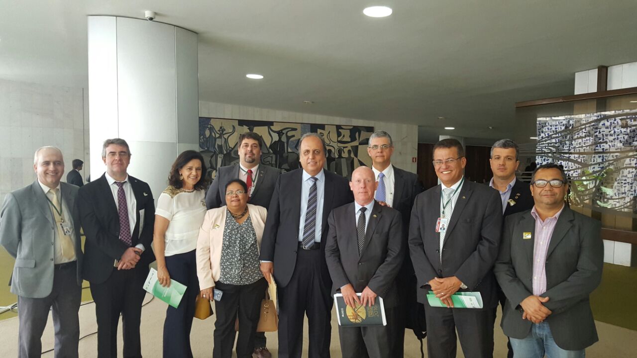 Os Diretores Jurídico e de Comunicação e Eventos da AUDITECE, Ubiratan Machado e Sérgio Sisnando, respectivamente, acompanhando dirigentes da Febrafite, discutiram na manhã de hoje (19) com o governador do Rio de Janeiro, Luiz Fernando Pezão, na Câmara dos Deputados, sobre a aprovação nesta terça-feira (18) no plenário da Casa, do texto base do Projeto de Lei Complementar (PLP) 343/17, do Poder Executivo, que cria um “regime especial” para os estados mais endividados.