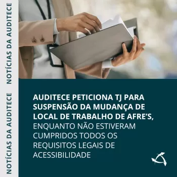 Auditece peticiona TJ para suspensão da mudança de local de trabalho de AFRE’s, enquanto não estiveram cumpridos todos os requisitos legais de acessibilidade