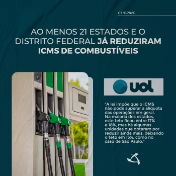 Clipping | Ao menos 21 estados e o Distrito Federal já reduziram ICMS de combustíveis