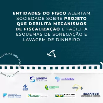Entidades do Fisco alertam sociedade sobre projeto que debilita mecanismos de fiscalização e facilita esquemas de sonegação e lavagem de dinheiro