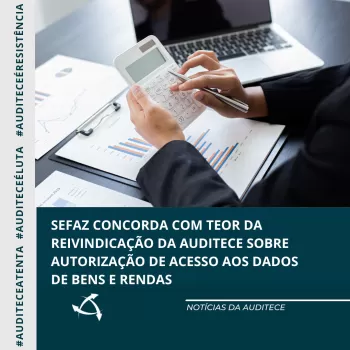 Secretaria da Fazenda concorda com teor da reivindicação da Auditece sobre autorização de acesso aos dados de bens e rendas