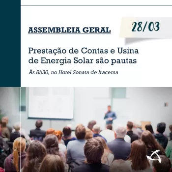 Prestação de Contas e Usina de Energia Solar são pautas da próxima Assembleia presencial, dia 28/03