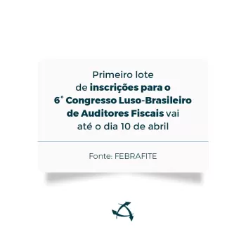 O primeiro lote de inscrições para o 6° Congresso Luso-Brasileiro de Auditores Fiscais vai até o dia 10 de abril. A…